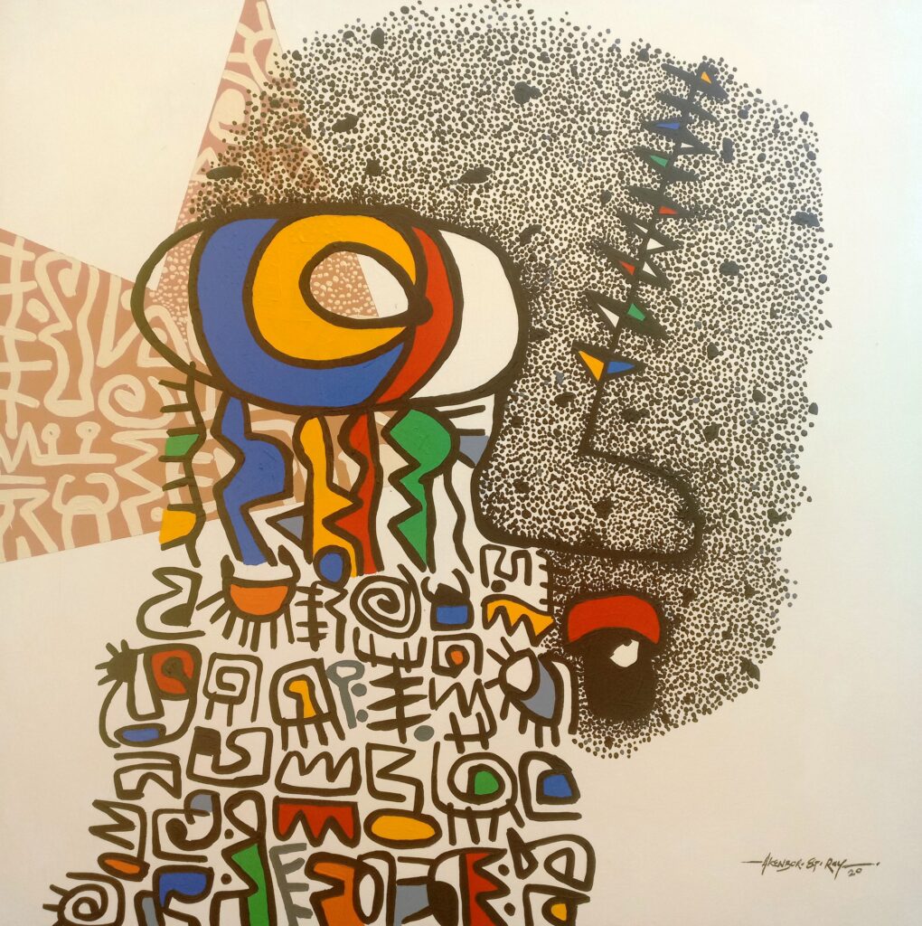 As I stand before the canvas, I am enveloped in a realm of boundless possibilities. The African abstract painting before me, affectionately titled “The Imagination 4,” transcends mere brushstrokes and pigments. It is an embodiment of my very being, a visual manifestation of my innermost emotions. Every dot, line, pattern, symbol, and shape is interwoven with the essence of my present state, connecting me to a world of profound beauty.