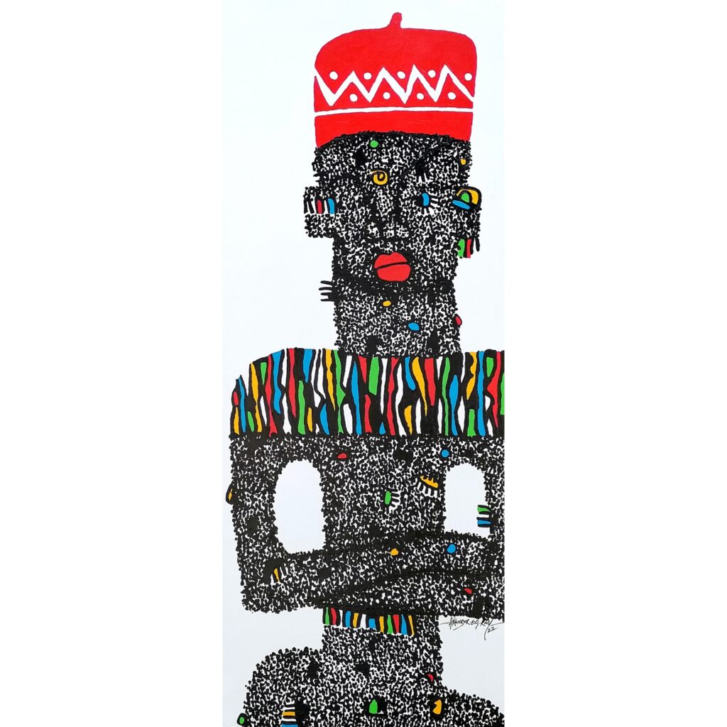 Created using acrylic on canvas, the painting measures 60 by 24 inches. It’s a striking piece that captures the essence of the Igbo culture and the importance of tradition in our lives.