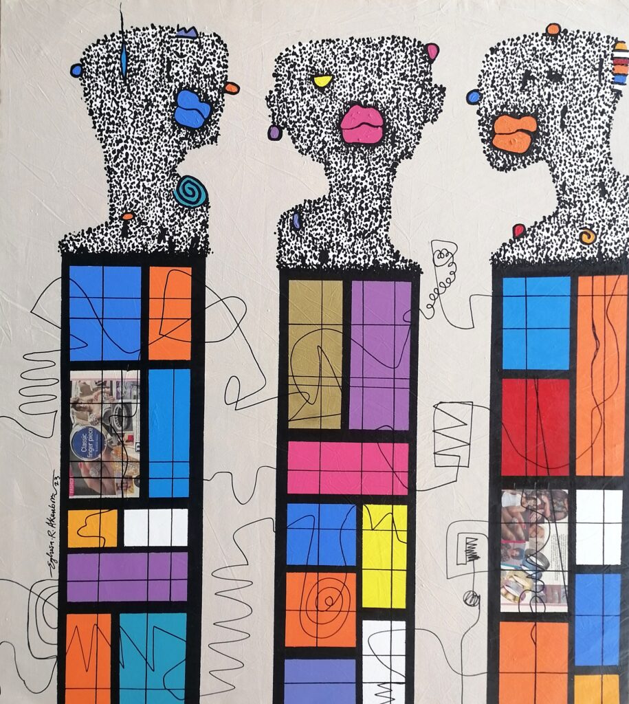 Through the painting, the artist invites the viewer to join in the conversation, to decode the language of art and appreciate the intricate details that make up this beautiful work of art. “The Conversation 2” is not just a painting but a story, a conversation between the artist and the canvas that is waiting to be deciphered.
