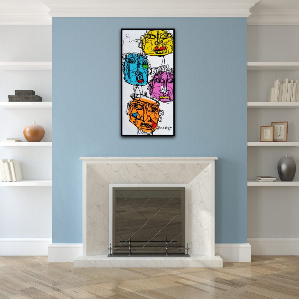In the vibrant tapestry of “Harmonious Bonds,” the essence of camaraderie is captured with every brushstroke. The canvas, a blank stage, becomes a realm where colours and lines dance together in a choreography of friendship. Abstract heads materialize, each stroke of acrylic and marker breathing life into their form.