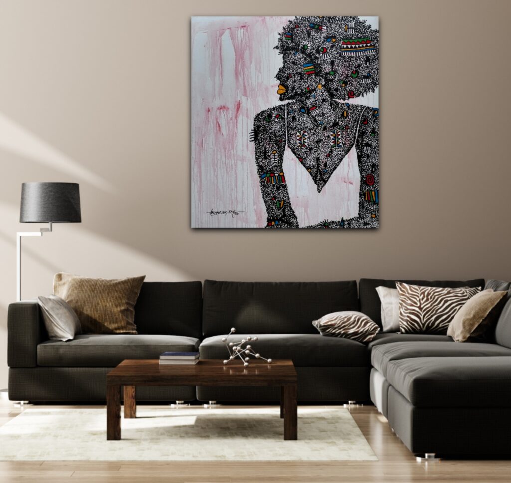 In an exploration of identity and heritage, I drew from the rich tapestry of my African culture, intricately weaving symbols, patterns, and dots into the composition. Each stroke of the brush was an homage to the ancestry that coursed through my veins, an acknowledgment of the deep-rooted connection to my origins.
