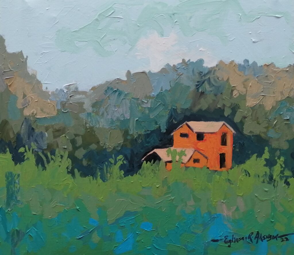 This canvas, with its warm hues, natural beauty, and peaceful ambiance, embodies the embodiment of my dreams—a haven away from the bustling city, where I can revel in quiet contemplation and bask in the embrace of nature. In this moment, I find myself longing for that tranquil escape, a place to retreat to after the whirlwind of urban life. “A Home in the Suburb” not only portrays a breath-taking landscape but also serves as a poignant reminder of the profound impact art has on our emotions, our desires, and our longing for a place to call our own.