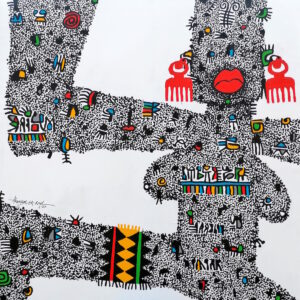 As I embark on this artistic adventure, I find myself drawn to the captivating allure of Sisiekos 1. This contemporary African mixed media painting holds within it a world of beauty and expression. Through its medium of markers and acrylic on canvas, it breathes life into a realm where colours dance and dimensions unfold.